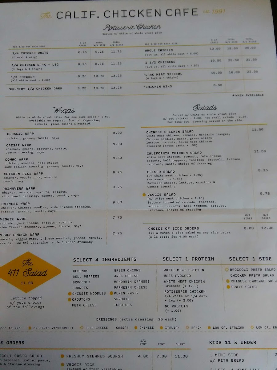 If you’re craving a meal that’s both healthy and satisfying, the Calif Chicken Cafe Menu is the perfect place to explore. Located on Ventura Blvd in Encino, this charming cafe offers a variety of dishes that cater to both your taste buds and your lifestyle. From tender grilled chicken to fresh, crisp salads and hearty wraps, each item is crafted with quality ingredients. The menu features an array of flavorful options, from savory bowls packed with protein to light bites perfect for a quick yet filling meal. Whether you're looking to indulge or keep things light, there's something here for every craving. The casual, welcoming atmosphere only adds to the experience, making it the ideal spot for a relaxed lunch or dinner.